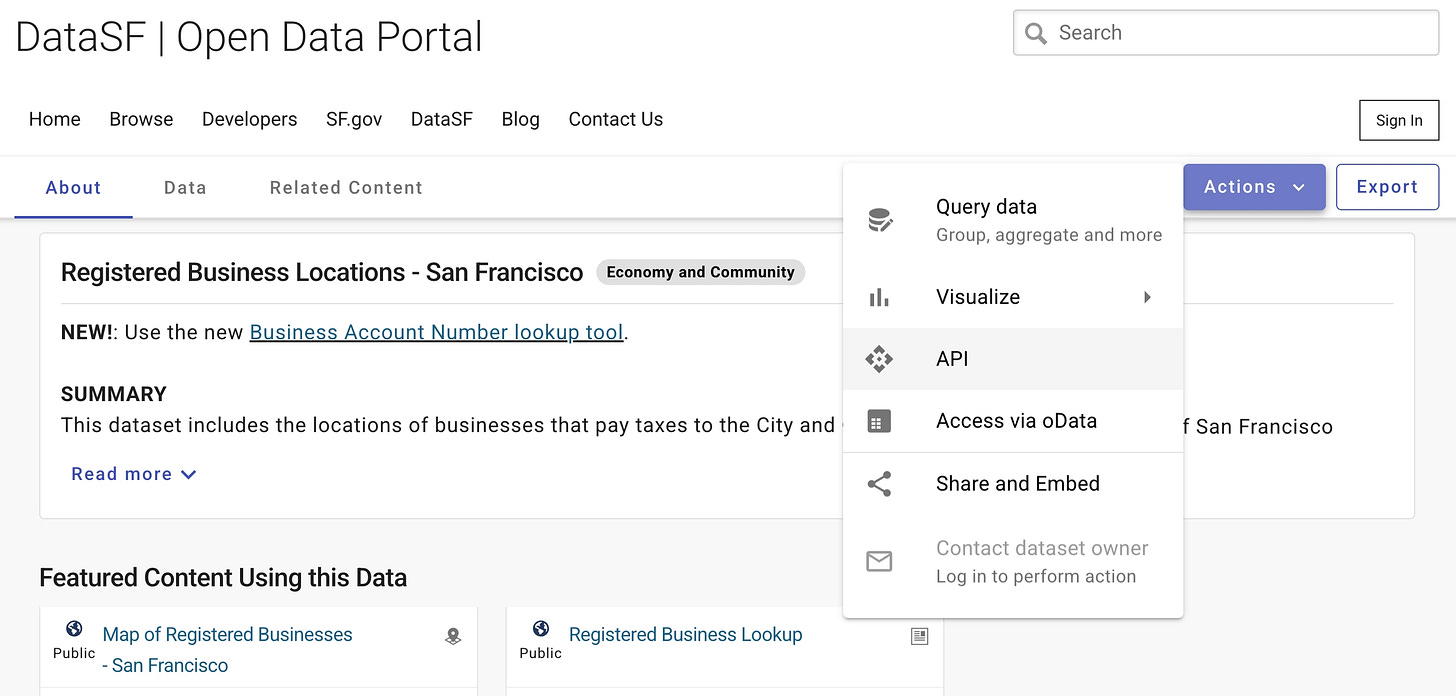 DataSF Tips: Using the Open Data Portal API