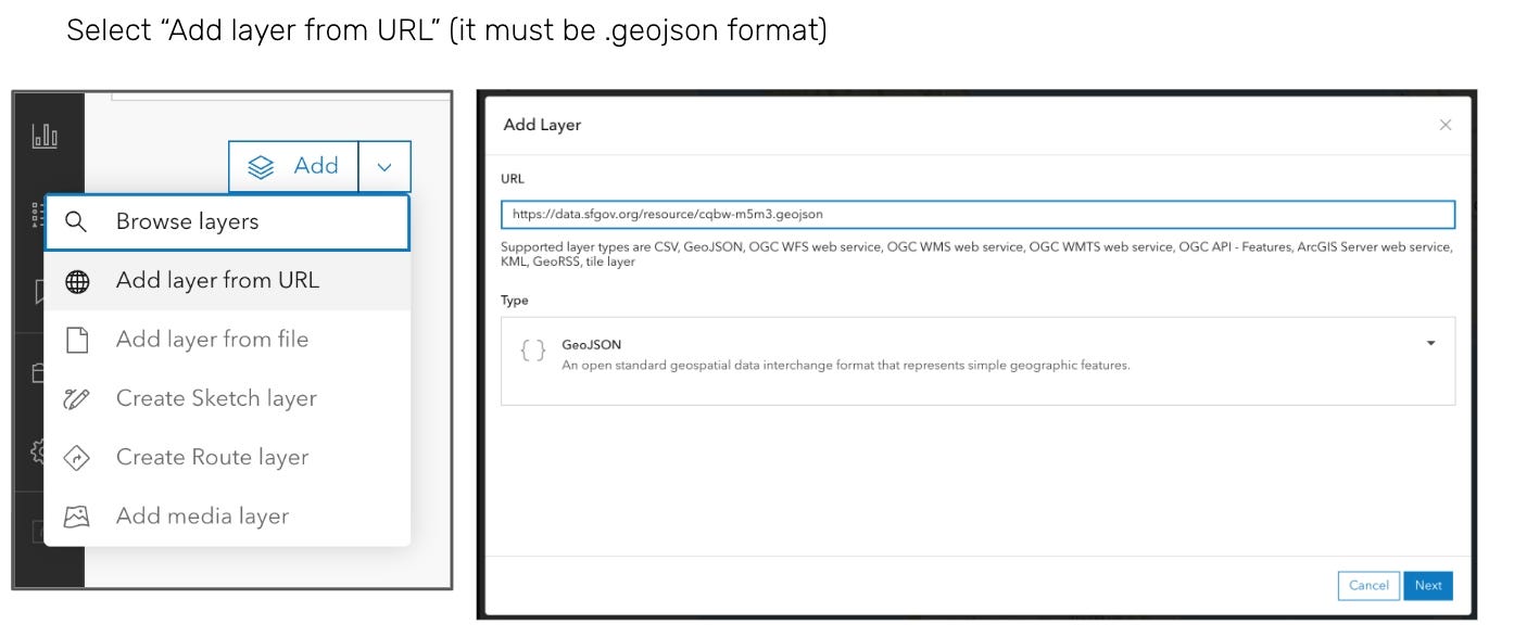 Add data from “web”, then add the API endpoint URL